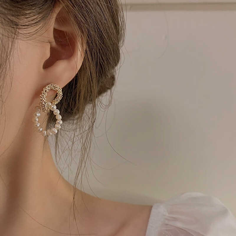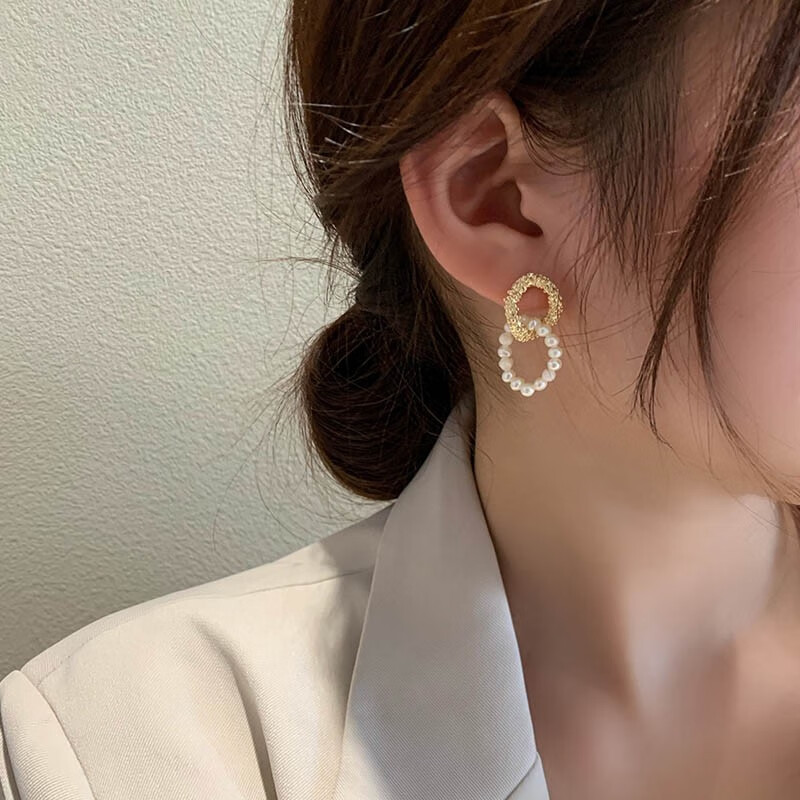 QIMEILA 高级感轻奢耳环S925银针小众气质淡水珍珠耳钉新款耳坠潮时尚耳饰