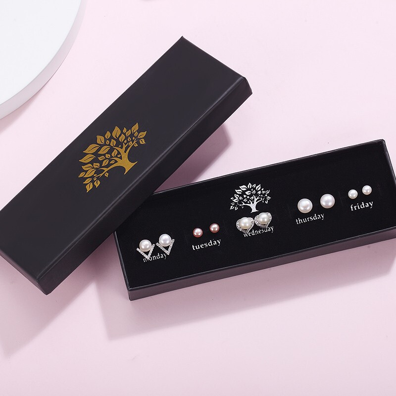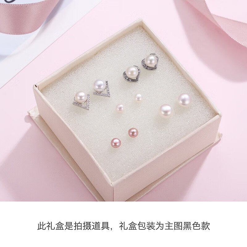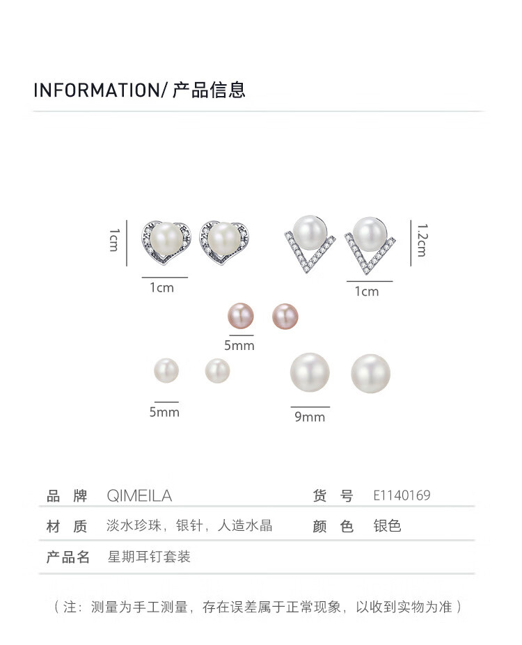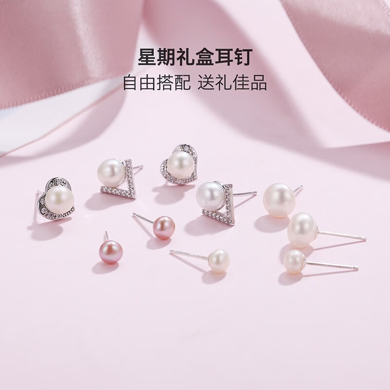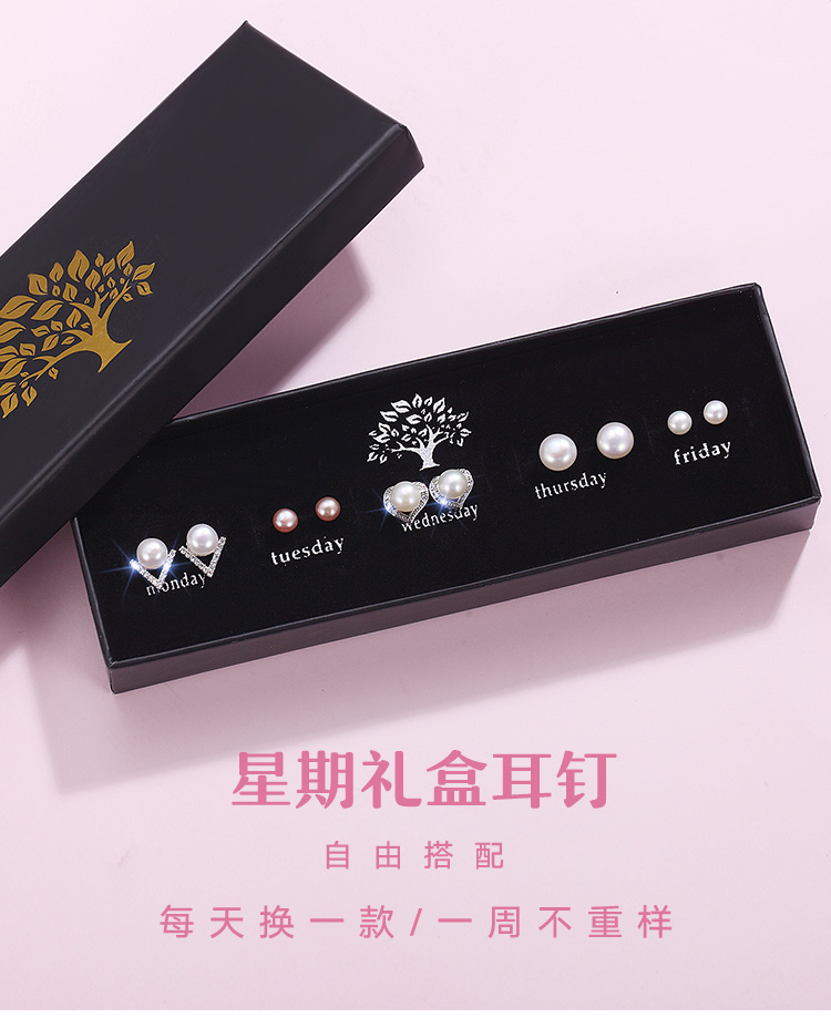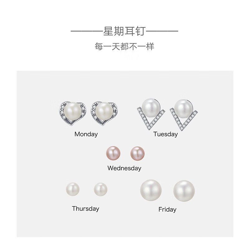 QIMEILA 淡水珍珠一周耳钉女礼盒5件套 925银针星期耳环首饰优雅情侣耳饰生日礼物送闺蜜送女友送老婆