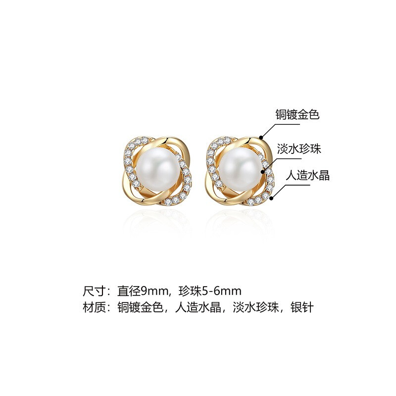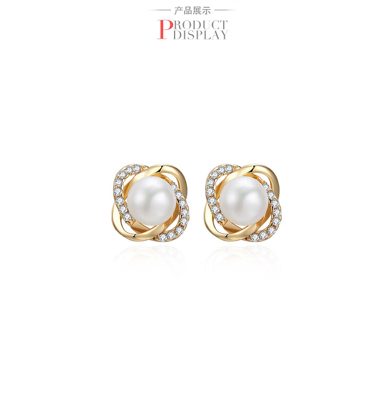QIMEILA 四叶草珍珠耳钉女 925银耳环耳饰首饰韩版复古法式优雅气质学生情侣生日礼物送女友