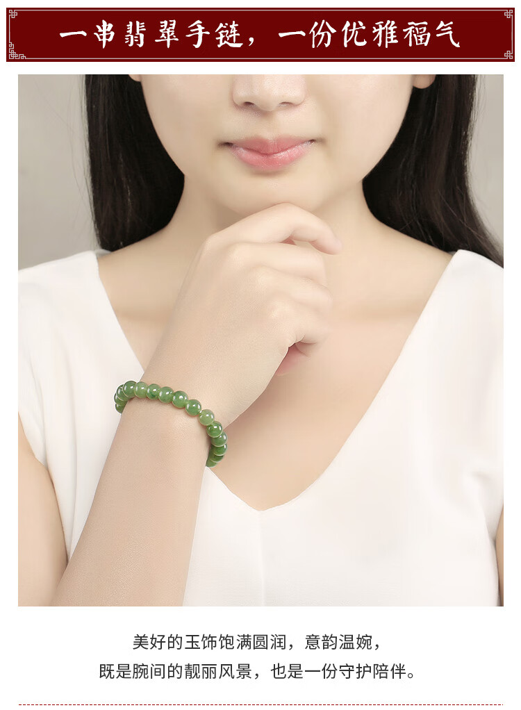 凤禧珠宝 翡翠玉手链玉珠子玉石手串女款