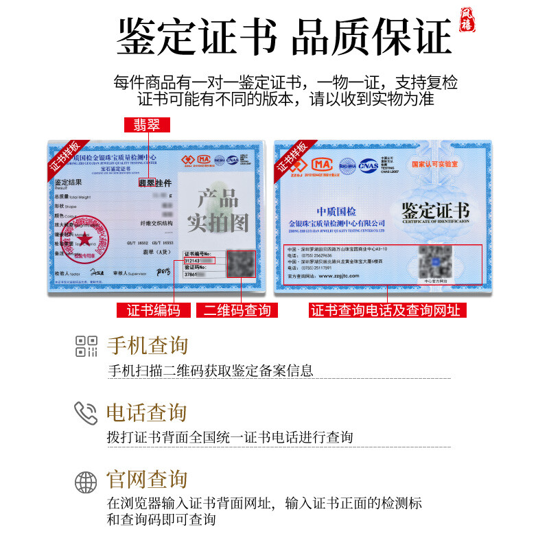• 包装清单: 翡翠手链×1,精美包装盒×1,鉴定证书×1